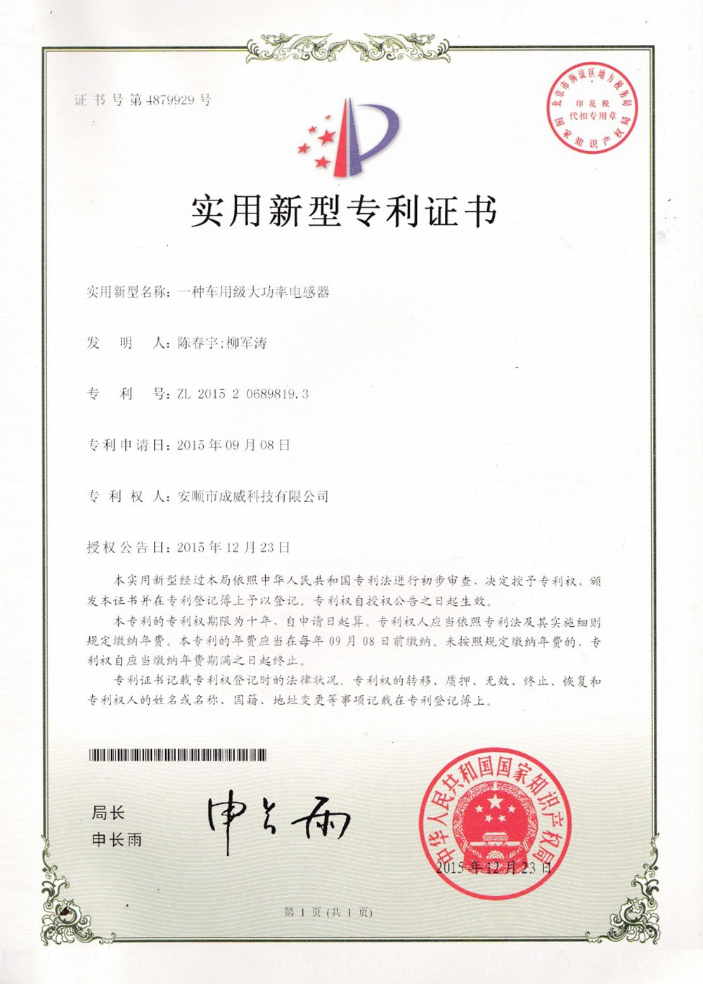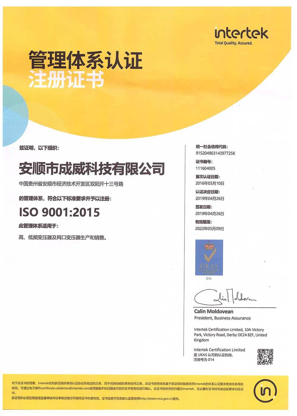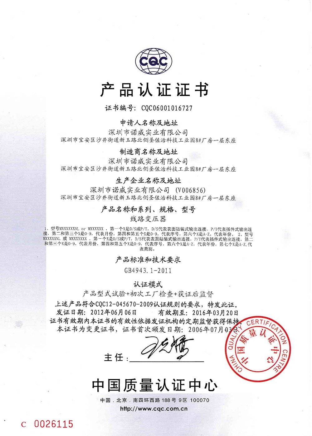 CQC產(chǎn)品認證證書