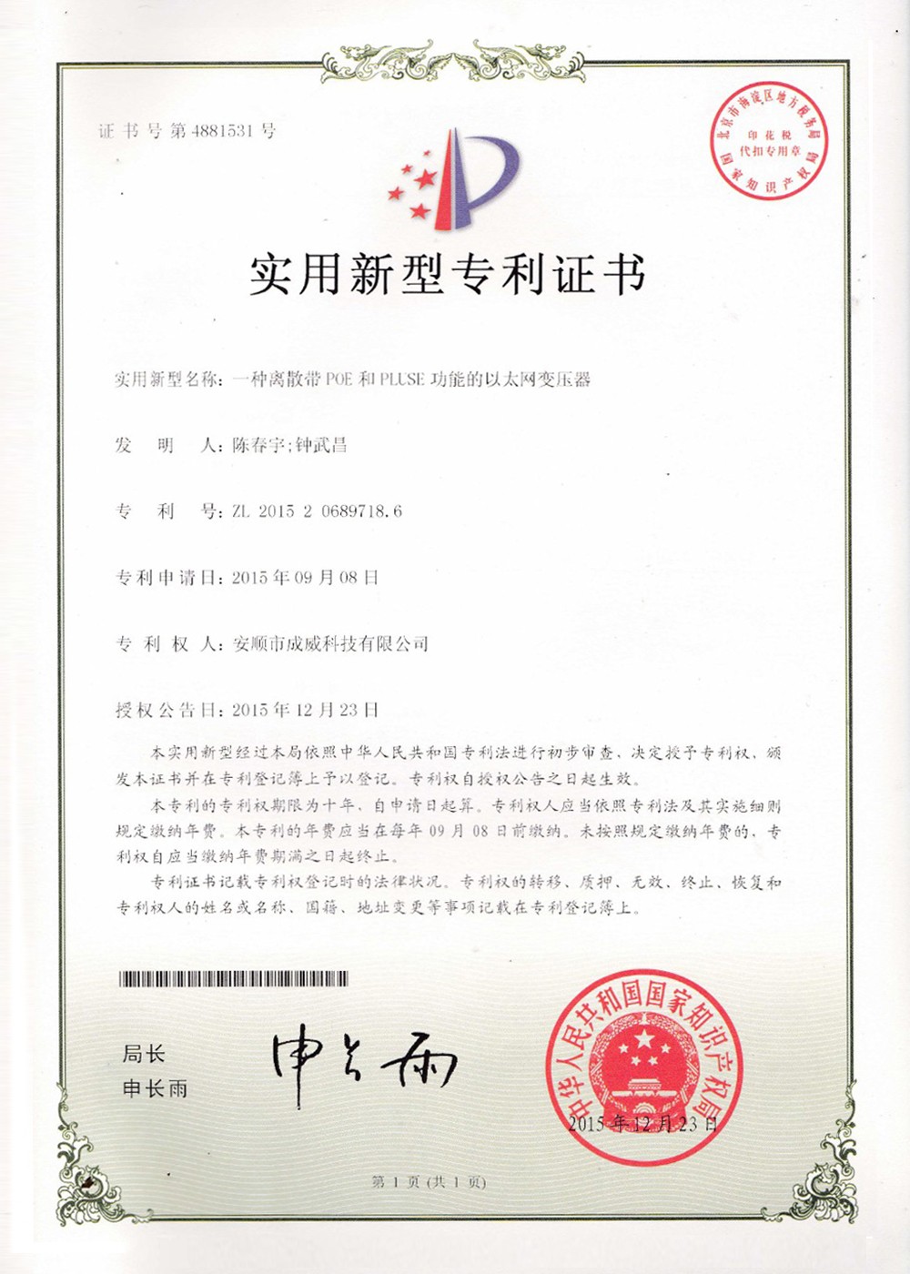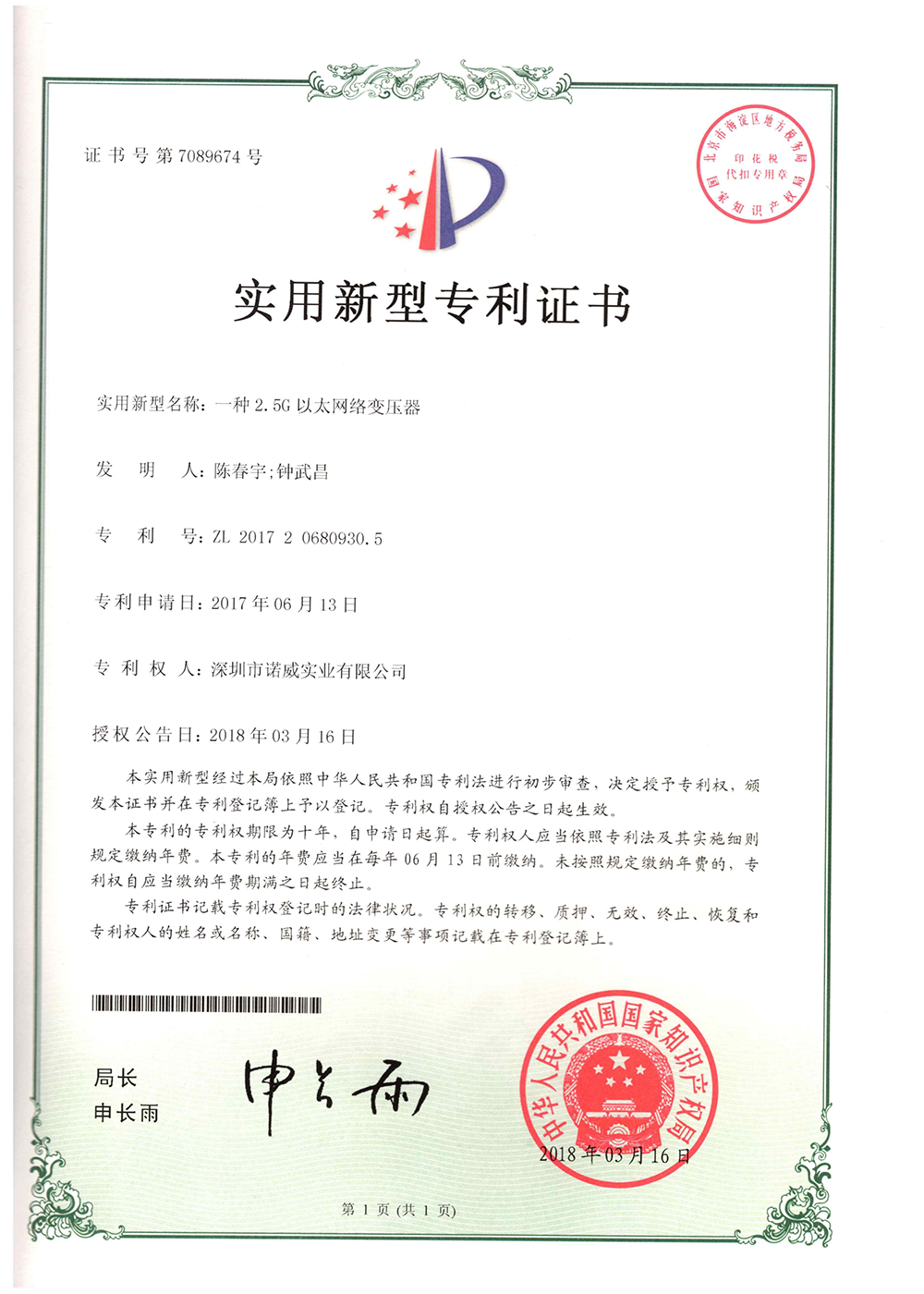 諾威實業(yè)新型專利證